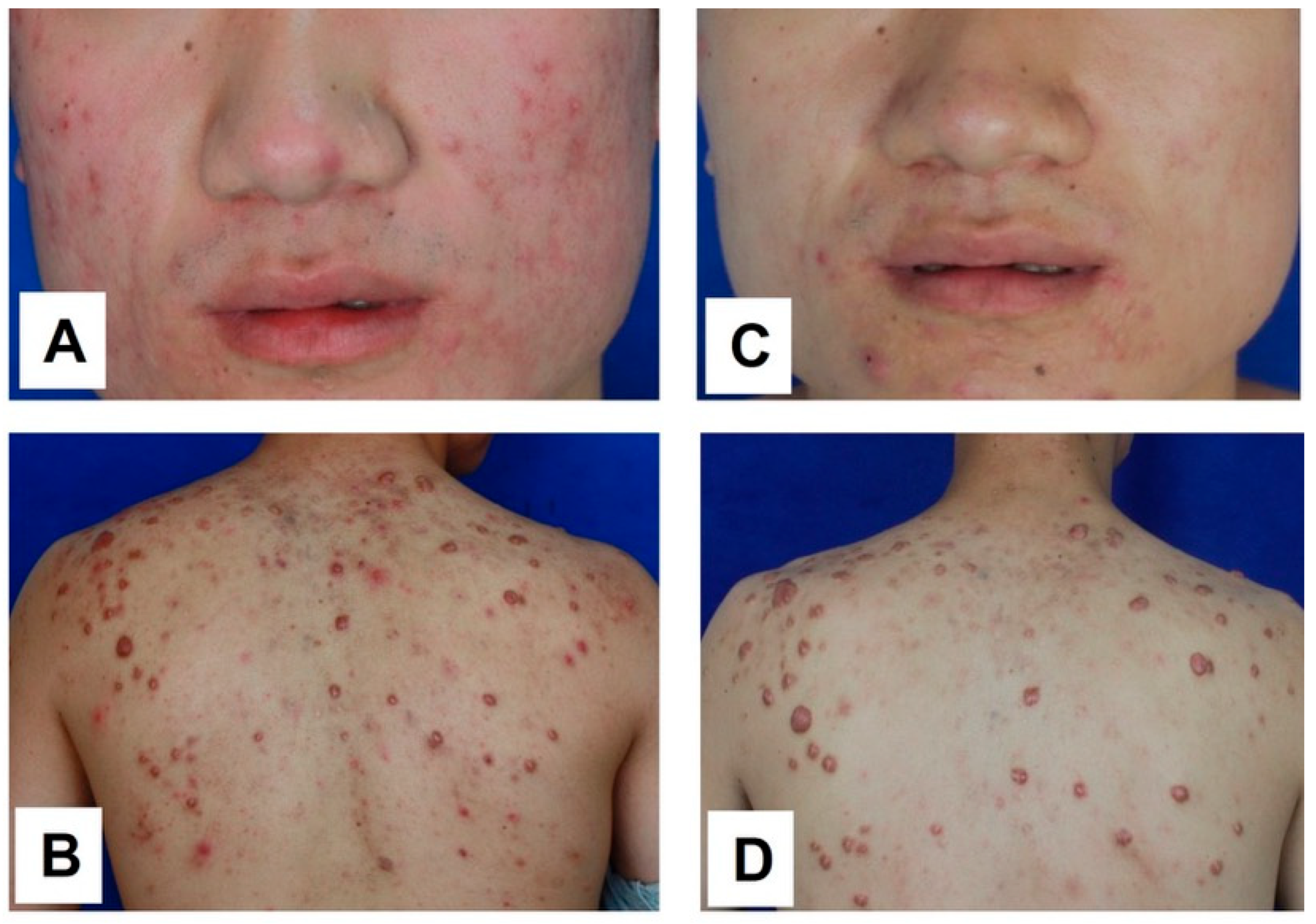 - Nakashima, M.; Chung, S.; Takahashi, A.; Kamatani, N.; Kawaguchi, T.; Tsunoda, T.; Hosono, N.; Kubo, M.; Nakamura, Y.; Zembutsu, H. A genome-wide association study identifies four susceptibility loci for keloid in the Japanese population. Nat. Genet. 2010, 42, 768–771. [Google Scholar] [CrossRef]