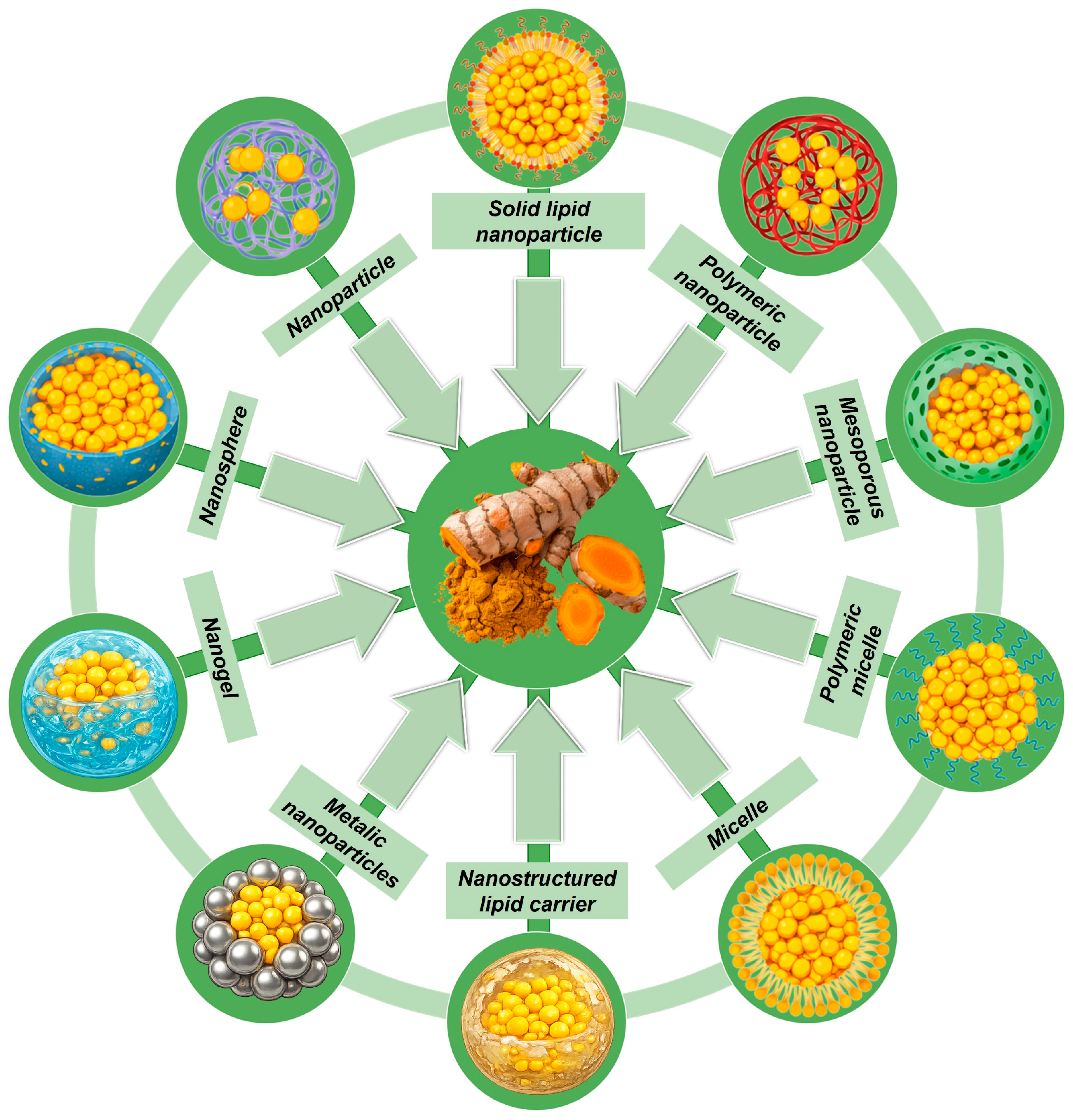 - Karthikeyan, A.; Senthil, N.; Min, T. Nanocurcumin: A Promising Candidate for Therapeutic Applications. Front. Pharmacol. 2020, 11, 487. [Google Scholar] [CrossRef] [PubMed]