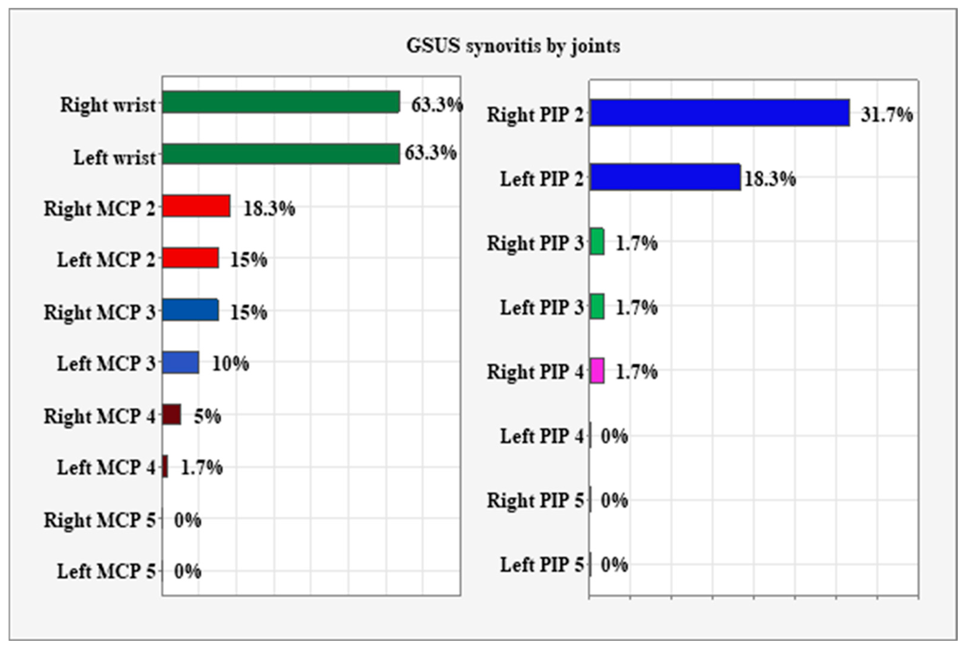 - Amezcua-Guerra, L.M.; Hofmann, F.; Vargas, A.; Rodriguez-Henriquez, P.; Solano, C.; Hernández-Díaz, C.; Castillo-Martinez, D.; Ventura-Ríos, L.; Gutiérrez, M.; Pineda, C. Joint involvement in primary Sjögren’s syndrome: An ultrasound “target area approach to arthritis”. BioMed Res. Int. 2013, 2013, 640265. [Google Scholar] [CrossRef] [PubMed] [PubMed Central]
