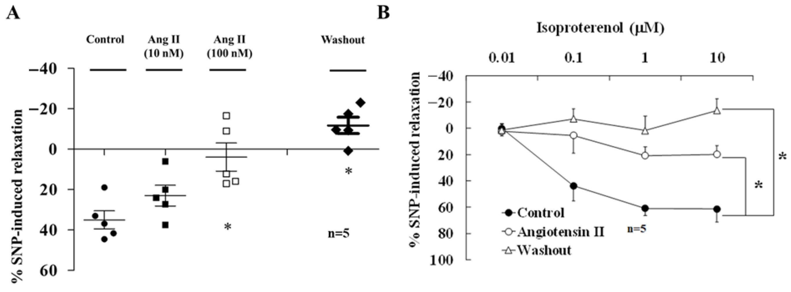 3.4. β-Adrenoceptor Agonist Isoproterenol-Induced Relaxation of Basilar Arterial Rings in SHRs