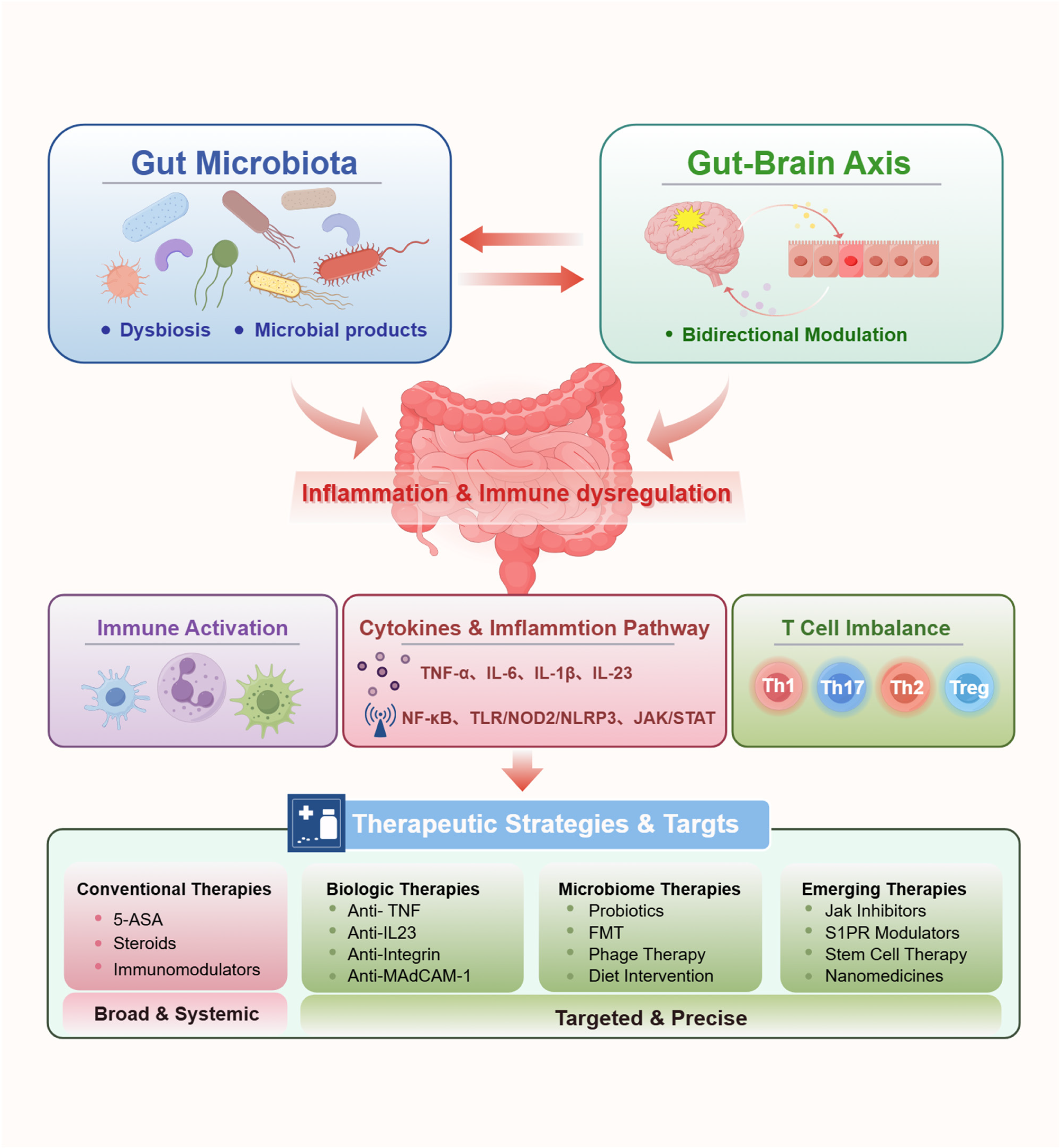 Current Perspectives on the Inflammatory Bowel Disease Pathogenesis of Microbiota and the Gut-Brain Axis, and Emerging Therapeutics
