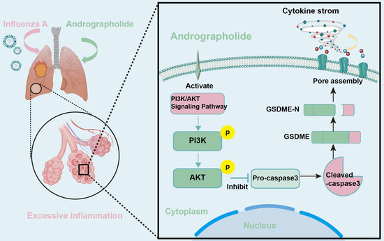 Chicago/Turabian StyleYang, Wen, Qi He, Zhen Sun, Xiaochang Zhang, Qingyu Li, Changdong Zhou, Yuke Cui, Zhenqiao Wei, Jingqi Shi, Chenhui Wang, and et al. 2026. "Andrographolide Suppresses Influenza A Virus-Induced Pyroptosis via PI3K/AKT-Mediated Caspase-3/GSDME Inactivation" Biomedicines 14, no. 4: 887. https://doi.org/10.3390/biomedicines14040887
