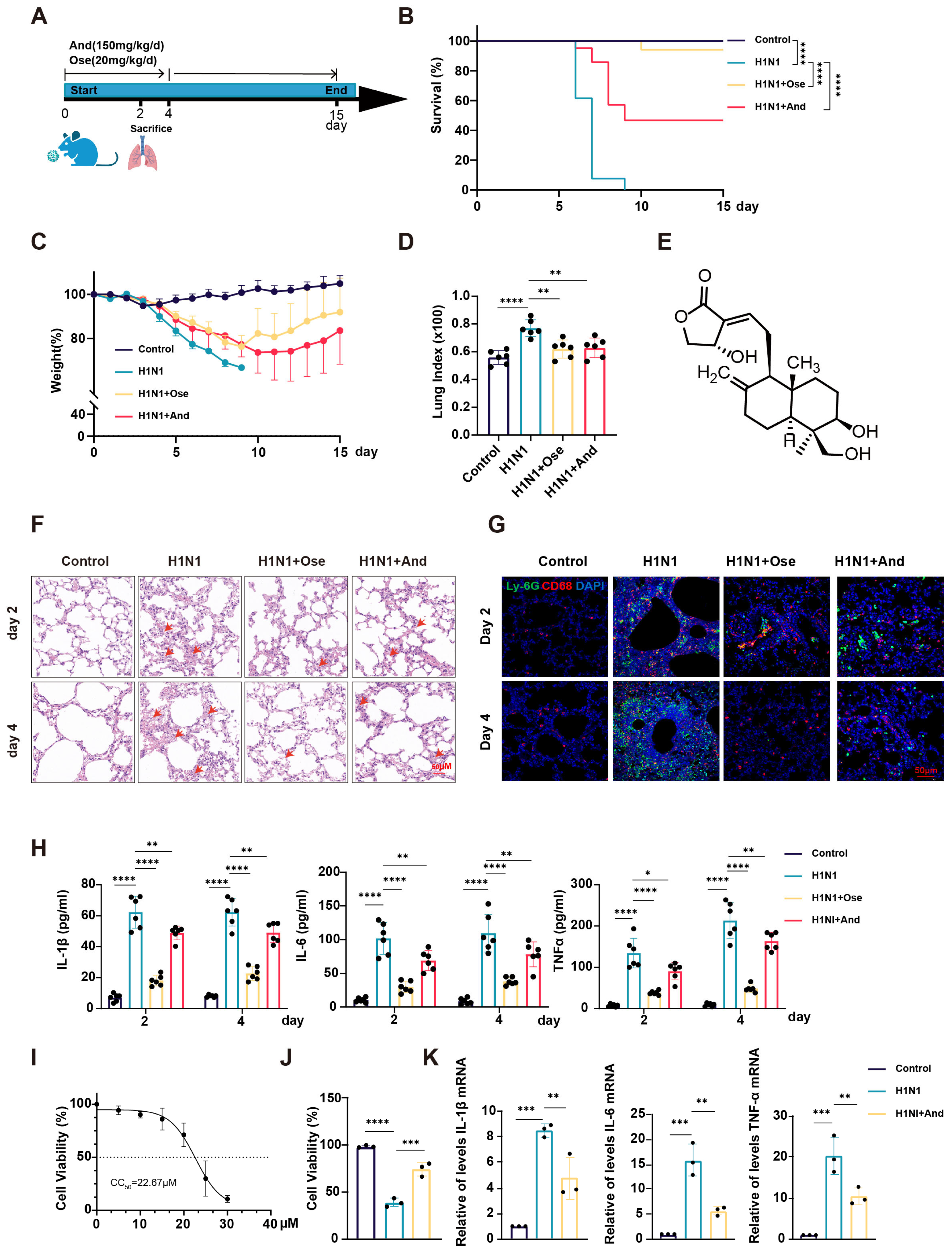 3.1. Andrographolide Conferred Protection Against IAV Infection In Vivo and In Vitro