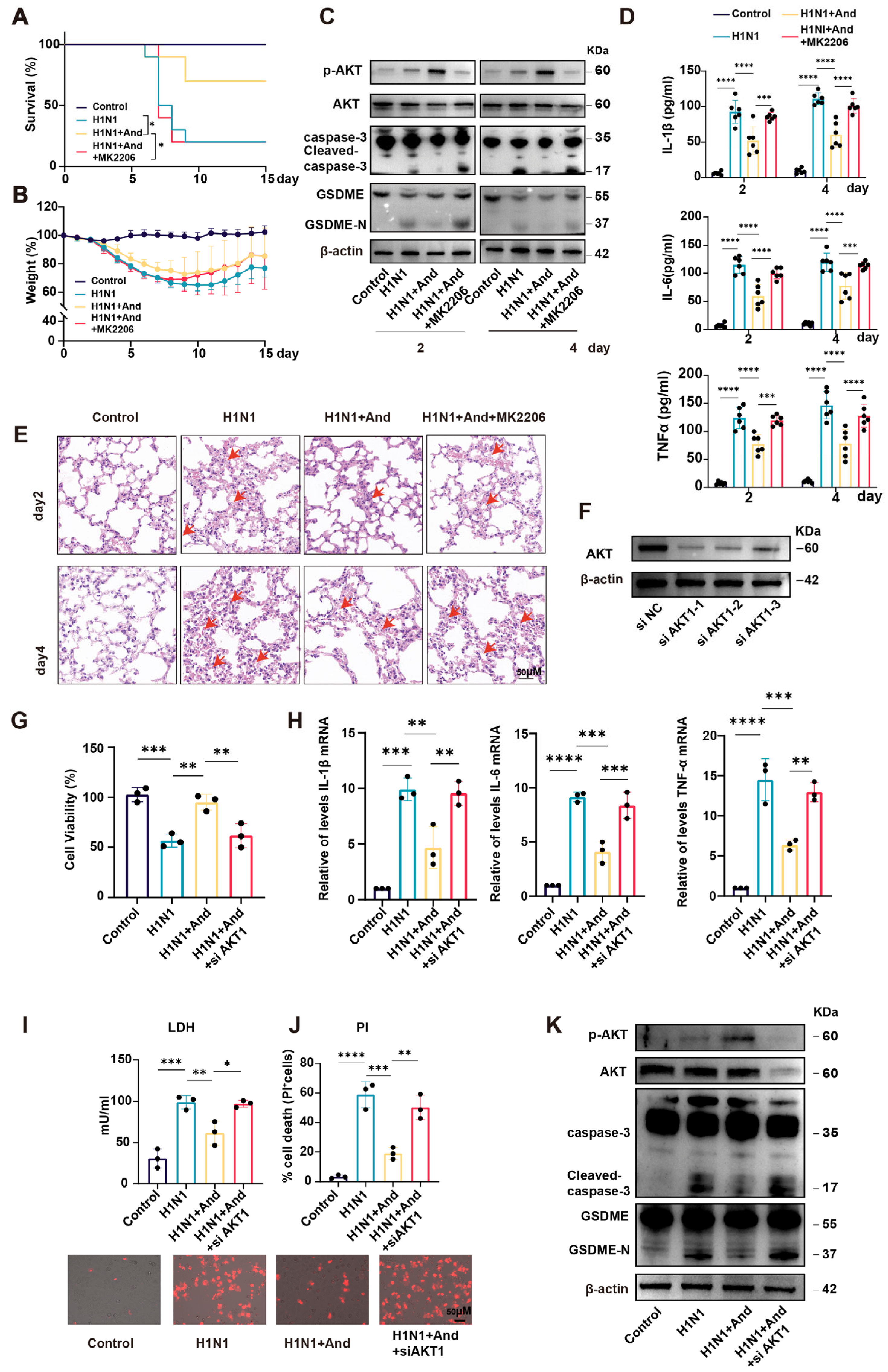 Yang W, He Q, Sun Z, Zhang X, Li Q, Zhou C, Cui Y, Wei Z, Shi J, Wang C, et al. Andrographolide Suppresses Influenza A Virus-Induced Pyroptosis via PI3K/AKT-Mediated Caspase-3/GSDME Inactivation. Biomedicines. 2026; 14(4):887. https://doi.org/10.3390/biomedicines14040887