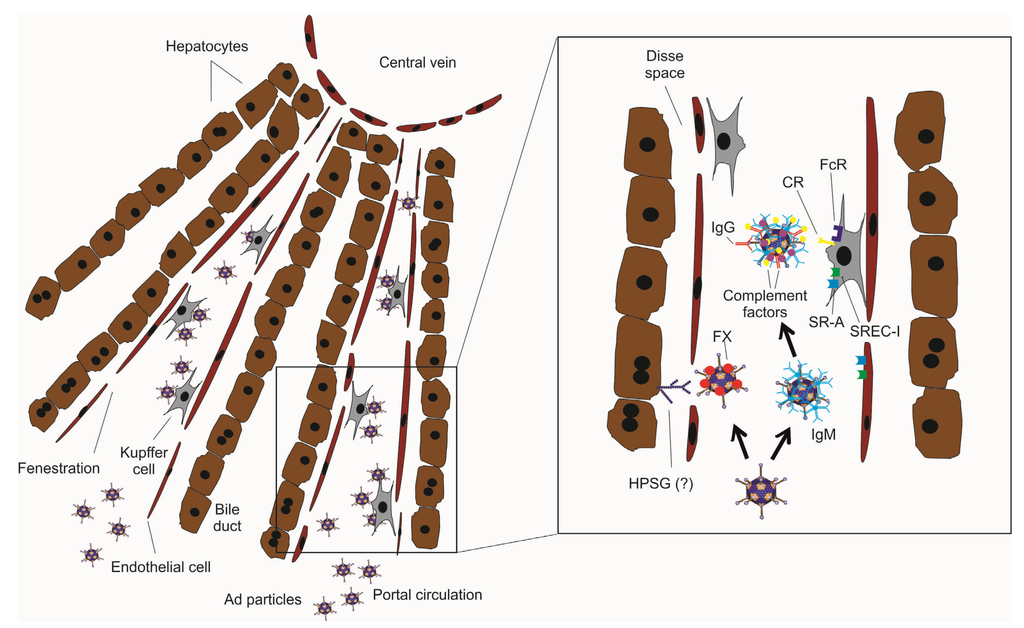 - Xu, Z.; Tian, J.; Smith, J.S.; Byrnes, A.P. Clearance of adenovirus by Kupffer cells is mediated by scavenger receptors, natural antibodies, and complement. J. Virol. 2008, 82, 11705–11713. [Google Scholar] [CrossRef]