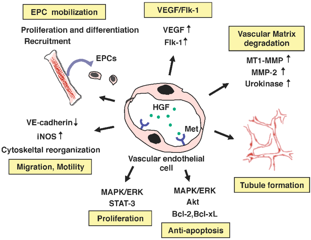 - Bussolino, F.; di Renzo, M.F.; Ziche, M.; Bocchietto, E.; Olivero, M.; Naldini, L.; Gaudino, G.; Tamagnone, L.; Coffer, A.; Comoglio, P.M. Hepatocyte growth factor is a potent angiogenic factor which stimulates endothelial cell motility and growth. J. Cell Biol. 1992, 119, 629–641. [Google Scholar] [CrossRef] [PubMed]