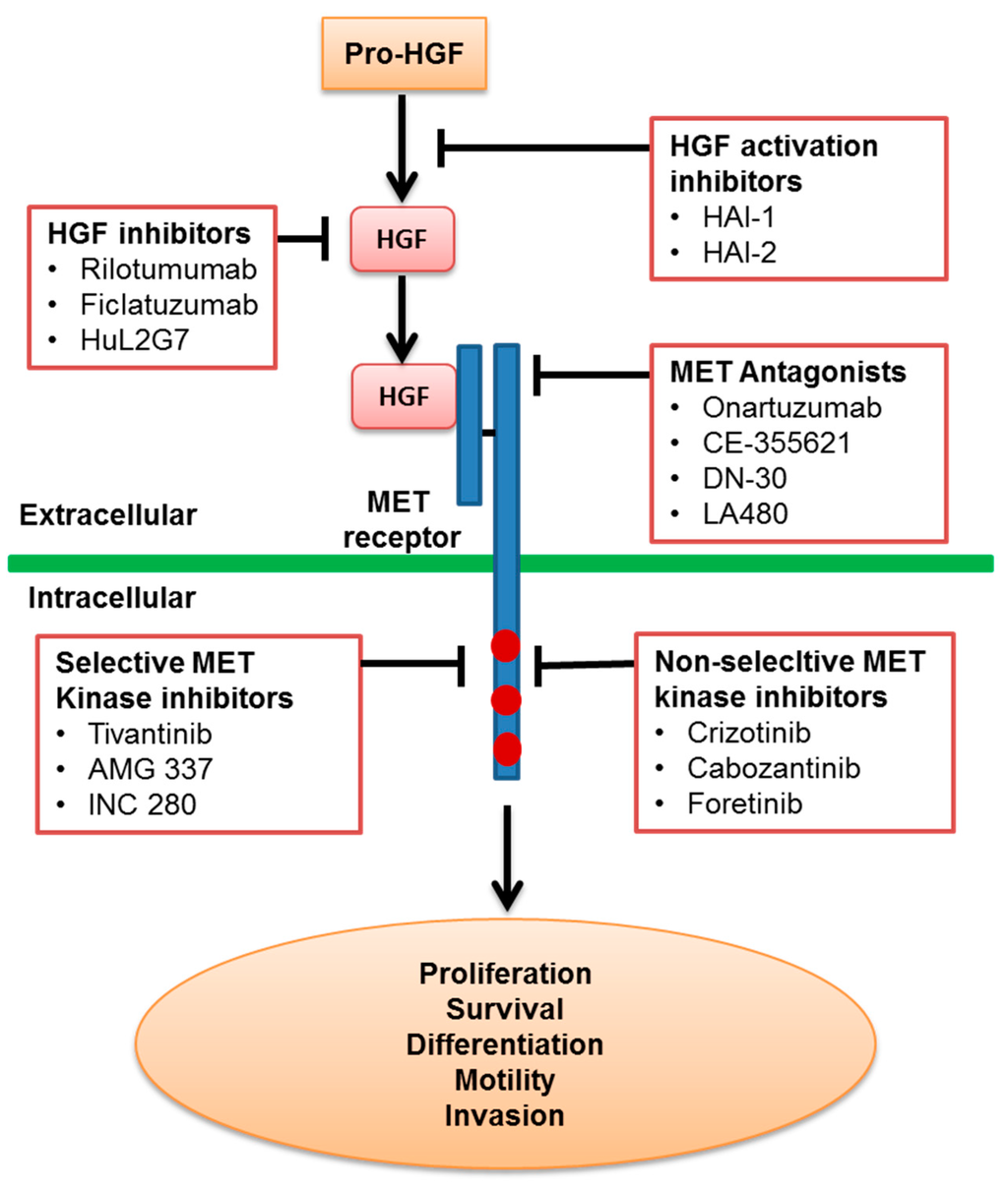 Hepatocyte growth factor (HGF) and its receptor MET regulate multiple normal cellular functions, including proliferation, survival, motility, and morphogenesis. HGF/MET signaling appears to be a critical pathway in a variety of malignancies, and thus it has become a potential target for cancer therapeutics [1].
