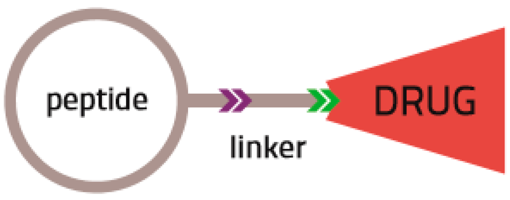 The success of using peptides to target over or exclusively expressed receptors in cancer cells, including those that are associated with tumor angiogenesis, serves as a basis for the creation of targeted drug delivery (TDD) systems. These systems are generally constructed with a peptide as a targeting moiety, a linker moiety and a therapeutic agent, as schematically presented in Figure 1. While a number of targeting peptides clinical applications have been isolated and are being developed), the tripeptidic sequences—RGD—have received significant attention.