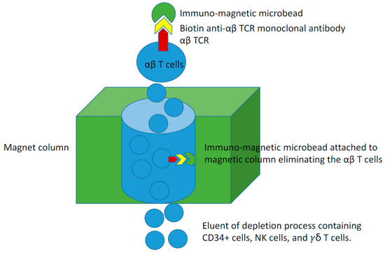 Immuno-magnetic microbead depletion process of the αβ T cells.