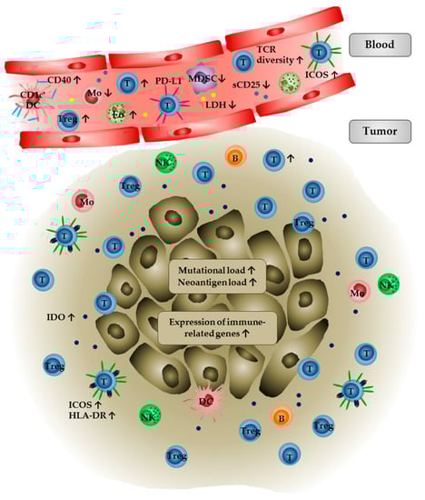 A summary of immunological characteristics in tumor or blood samples of anti-PD-1/PD-L1 antibody-treated patients that are associated with clinical outcome is given in Figure 2.
