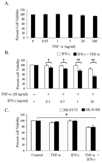The following are available online at www.mdpi.com/2227-9059/6/1/4/s1, Figure S1: Viability of SH-SY-5Y cells after 72 h exposure of IFN-γ and TNF-α alone and in combination treatment, Figure S2: Analysis of Bcl-2 transcript using RT-PCR at 24 and 48 h time on exposure of IFN-γ and TNF-α alone and in combination.