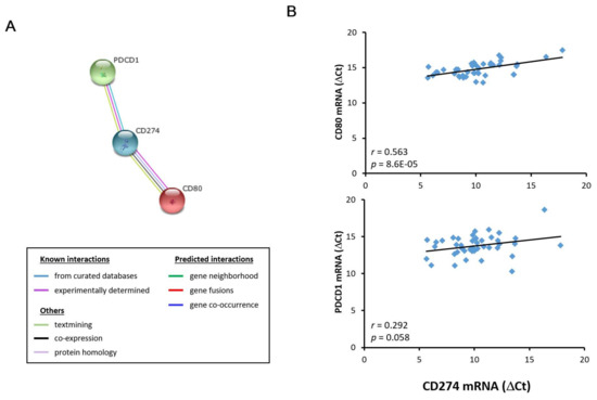 Correlation analysis of CD274 and its related molecules in liver grafts from transplant recipients. (A) Bioinformatics analysis revealed that CD80 and PDCD1 were CD274-related molecules; (B) CD80, but not PDCD1, demonstrated a positive gene expression correlation with CD274 in liver grafts from 43 transplant recipients using RT-qPCR.