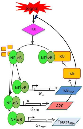 - Hoffmann, A. The IkappaB–NF-kappaB Signaling Module : Temporal Control and Selective Gene Activation. Science 2002, 1241, 1241–1245. [Google Scholar] [CrossRef] [PubMed]