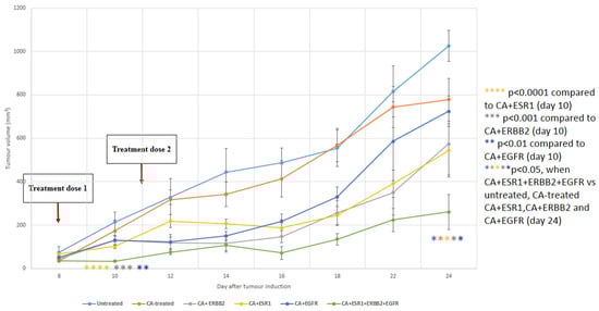 3.6. Intravenous Delivery of CA Nanoformulations of siRNAs Targeting ESR1, ERBB2 and EGFR