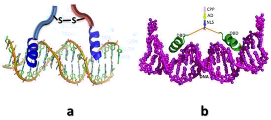 - Vázquez, M.E.; Caamaño, A.M.; Mascarenas, J. From transcription factors to designed sequence-specific DNA-binding peptides. Chem. Soc. Rev. 2003, 32, 338–349. [Google Scholar] [CrossRef] [PubMed]