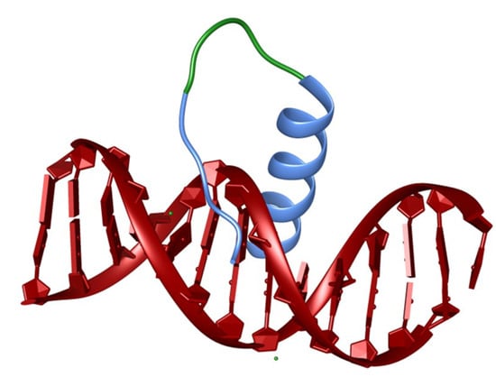 - Zondlo, N.J.; Schepartz, A. Highly specific DNA recognition by a designed miniature protein. J. Am. Chem. Soc. 1999, 121, 6938–6939. [Google Scholar] [CrossRef]