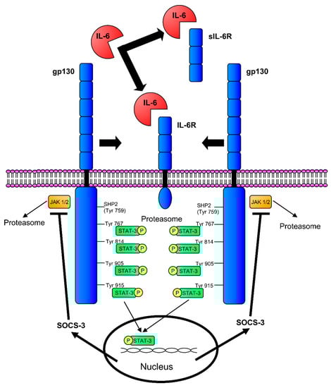 - Heinrich, P.C.; Behrmann, I.; Haan, S.; Hermanns, H.M.; Muller-Newen, G.; Schaper, F. Principles of interleukin (IL)-6-type cytokine signalling and its regulation. Biochem. J. 2003, 374, 1–20. [Google Scholar] [CrossRef]