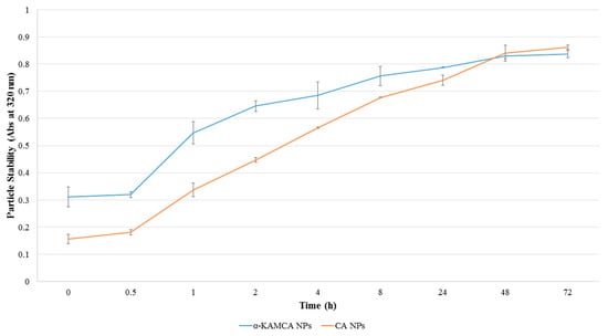 Time-dependent stability test of CA and α-KAMCA NPs.