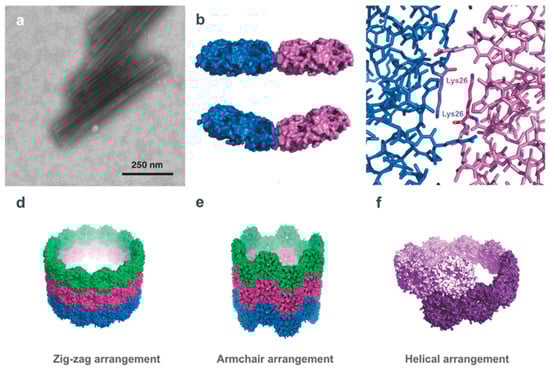 - Uddin, I.; Frank, S.; Warren, M.J.; Pickersgill, R.W. A Generic Self-Assembly Process in Microcompartments and Synthetic Protein Nanotubes. Small 2018, 14, 1704020. [Google Scholar] [CrossRef] [PubMed]