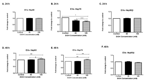 3.4. Alcohol Dosing Increases Heat Shock Proteins within EVs