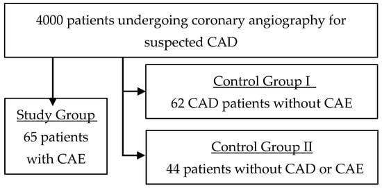 For this retrospective cohort study, we analyzed detailed patient data collected in the cardiac catheterization unit from 2014 until 2018. Based on clinical indications, coronary angiography was performed to investigate ischemic heart diseases. The study analyzed 4000 patients undergoing catheterization at our unit, with a total of 171 patients selected for the study. The patients were matched by age, gender (male), and catheterization time. The population study was divided into three groups, ectatic (CAE), obstructive with coronary artery disease (CAD), and the control group with normal coronary angiograms. The study protocol adhered to the Declaration of Helsinki and was approved by the institutional review board of Barzilai Medical Center (BRZ-0005-14, approval date 02/02/2014, and further extended on 27/02/2016), Ben-Gurion University, Israel. Written informed consent was obtained from the patients to participate in the study.
