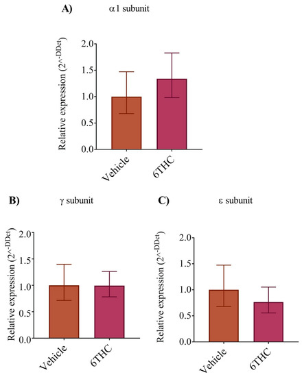 3.4. THC Does Not Alter nAChR Subunit Expression