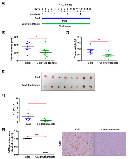 3.2. Depletion of Macrophages Reduced the Growth of Tumors in the Allograft Model