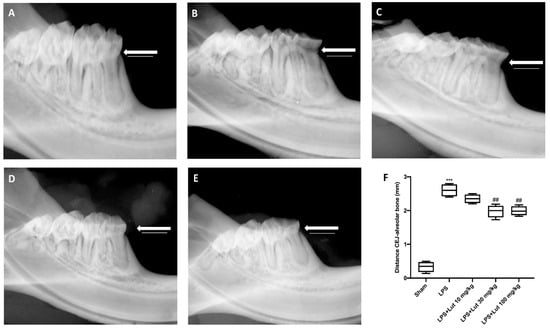 2.1. Effects of Lut Administration on Bone Destruction Induced by LPS in Gingival Tissues