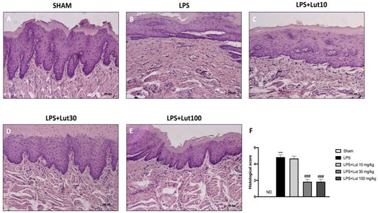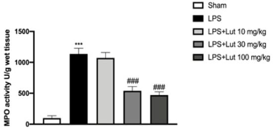 2.2. Effects of Lut Administration on Histological Damage and Neutrophilic Infiltration