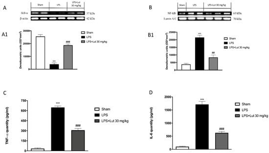 2.5. Lut Treatment Modulated NF-κB Pathway and Pro-Inflammatory Cytokines Production