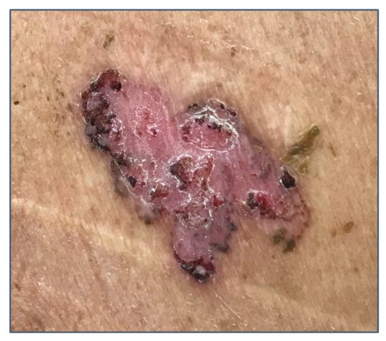 - Čeović, R.; Smolković, N.; Pašić, A.; Kostović, K.; Hrsan, D. Multiple basal cell carcinomas of lower legs with stasis dermatitis: A therapeutic challenge. Acta Dermatovenerol. Croat. 2012, 20, 191–196. [Google Scholar] [PubMed]