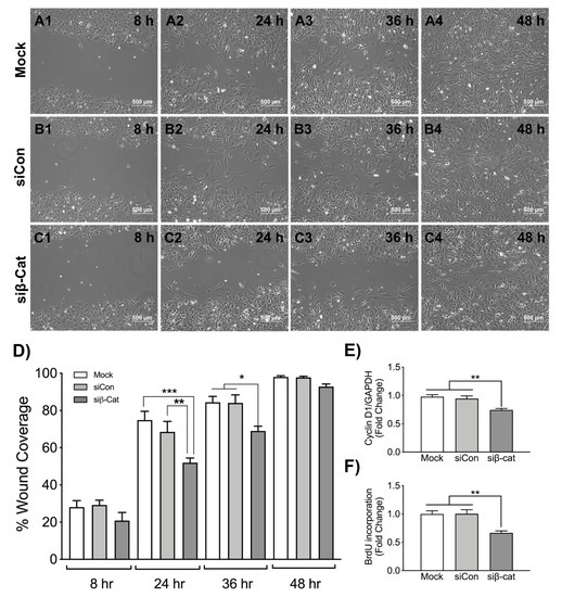 3.3. β-Catenin Regulates Wound Healing and Astrocyte Proliferation