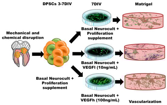 - Luzuriaga, J.; Pastor-Alonso, O.; Encinas, J.M.; Unda, F.; Ibarretxe, G.; Pineda, J.R. Human Dental Pulp Stem Cells Grown in Neurogenic Media Differentiate into Endothelial Cells and Promote Neovasculogenesis in the Mouse Brain. Front. Physiol. 2019, 10, 347. [Google Scholar] [CrossRef]