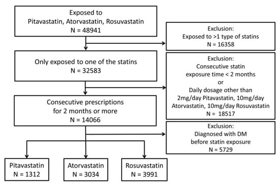 APA StyleLiu, W.-T., Lin, C., Tsai, M.-C., Cheng, C.-C., Chen, S.-J., Liou, J.-T., Lin, W.-S., Cheng, S.-M., Lin, C.-S., & Tsao, T.-P. (2020). Effects of Pitavastatin, Atorvastatin, and Rosuvastatin on the Risk of New-Onset Diabetes Mellitus: A Single-Center Cohort Study. Biomedicines, 8(11), 499. https://doi.org/10.3390/biomedicines8110499