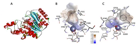 - Pettersen, E.F.; Goddard, T.D.; Huang, C.C.; Couch, G.S.; Greenblatt, D.M.; Meng, E.C.; Ferrin, T.E. UCSF Chimera—A visualization system for exploratory research and analysis. J. Comput. Chem. 2004, 25, 1605–1612. [Google Scholar] [CrossRef]