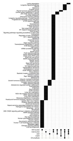 3.2. Pathway Enrichment Analysis of Metric-Associated Somatic Variants
