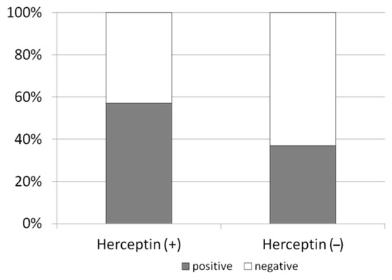 Anti-HER2/neu protection from chemotherapy-induced ovarian toxicity in cancer patients. Serum AMH in breast cancer patients who were treated or not treated with trastuzumab. Positive AMH levels were detected in 57.1% of the Herceptin treated patients compared with 36.8% in the non trastuzumab group (p < 0.05).
