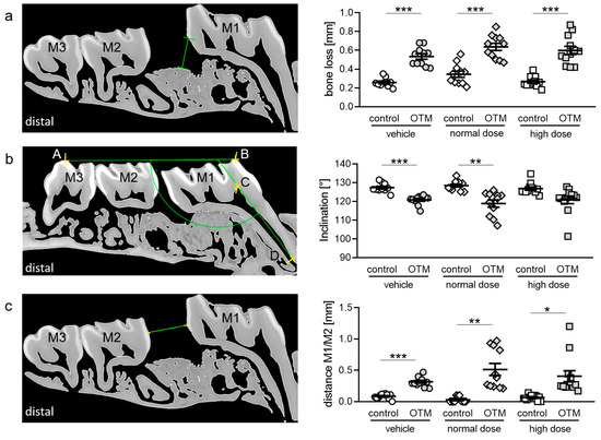 - Kirschneck, C.; Fanghänel, J.; Wahlmann, U.; Wolf, M.; Roldán, J.C.; Proff, P. Interactive effects of periodontitis and orthodontic tooth movement on dental root resorption, tooth movement velocity and alveolar bone loss in a rat model. Ann. Anat. 2017, 210, 32–43. [Google Scholar] [CrossRef] [PubMed]