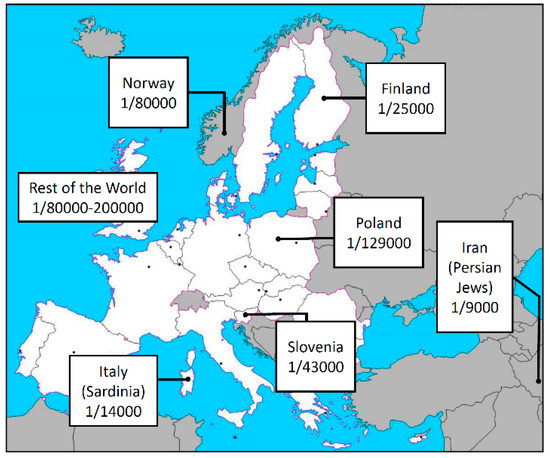 Prevalence of the APS-1 in different European countries and in the rest of the world.