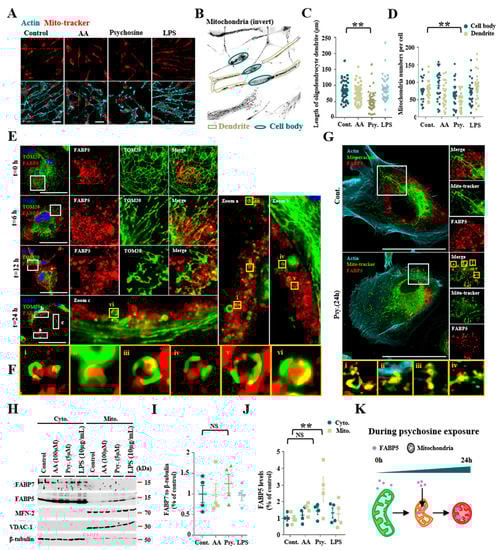 3.1. Psychosine Triggered Mitochondria Loss and Abnormal Accumulations of FABP5 in Mitochondria