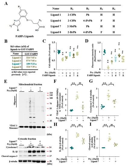 - Shinoda, Y.; Wang, Y.F.; Yamamoto, T.; Miyachi, H.; Fukunaga, K. Analysis of binding affinity and docking of novel fatty acid-binding protein (FABP) ligands. J. Pharmacol. Sci. 2020, 143, 264–271. [Google Scholar] [CrossRef]