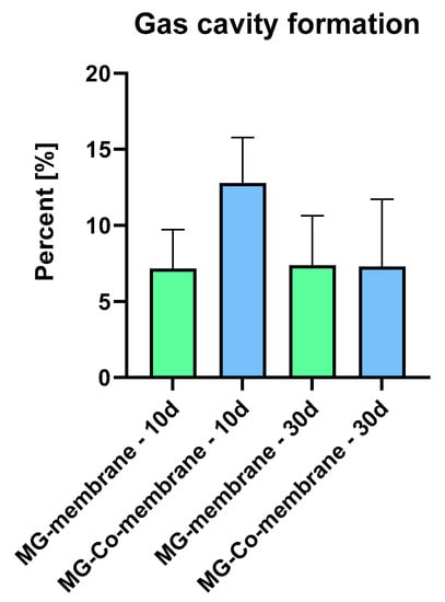 Histomorphometric results of the gas cavity formation in case of the analyzed magnesium-based membranes.