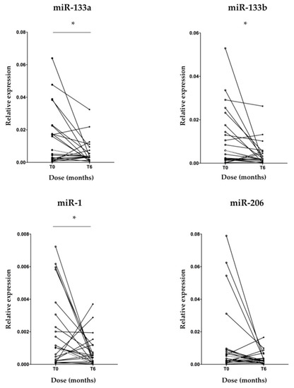 3.2. MyomiR Expression Reduction in Serum of SMA Patients during Nusinersen Treatment