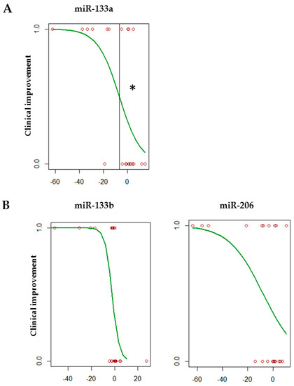 3.3. Association between myomiR Expression Levels in Serum and Clinical Improvement of SMA Patients during Nusinersen Treatment