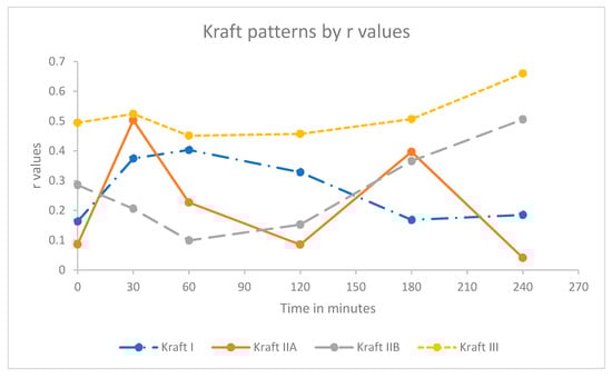 Kraft insulin response pattern r values against time. Due to the limited number of participants, Kraft pattern IV and V were not used in further analysis.