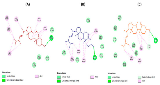 3.4.1. Brassicasterol with Enzymes Involved in Viral Replication