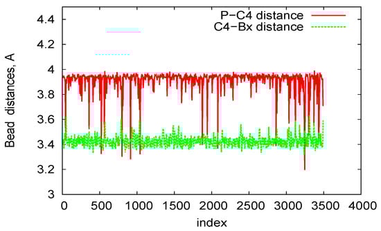 P-C4 and C4-Bx bond length in the three-bead Coarse-Grained (CG) model for the two-ring RNA nanotube.