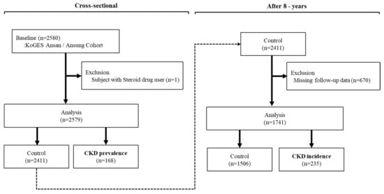 3.4. Baseline Characteristics of Subjects with and without CKD after Eight Years