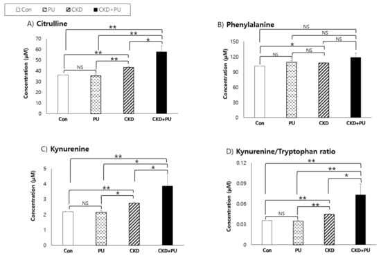 3.7. Comparison of Metabolite Concentration in Subjects with and without CKD or Proteinuria