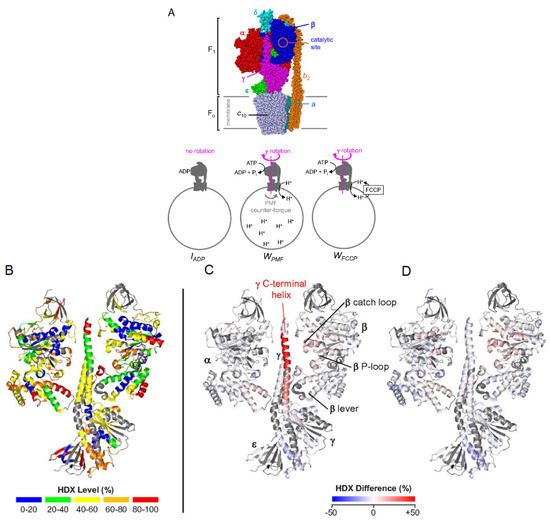 - Vahidi, S.; Bi, Y.; Dunn, S.D.; Konermann, L. Load-dependent destabilization of the γ-rotor shaft in FOF1 ATP synthase revealed by hydrogen/deuterium-exchange mass spectrometry. PNAS 2016, 113, 2412–2417. [Google Scholar] [CrossRef]